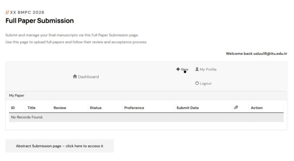 After logging in, click the ‘+ New’ button on your Dashboard to open the submission